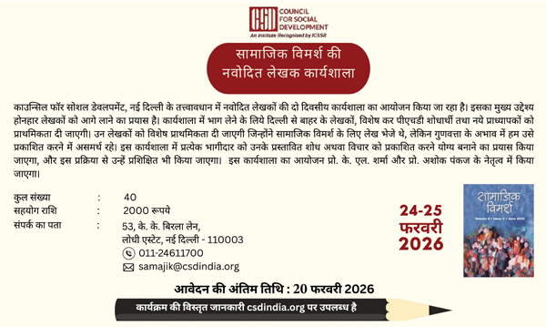 नवोदित लेखक कार्यशाला सामाजिक विमर्श का कार्यक्रम 24-25 फरवरी 2026